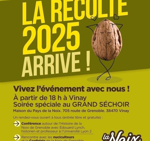 Soirée spéciale au Grand Séchoir pour fêter l'événement de la nouvelle récolte de la noix AOP de Grenoble. Au programme : conférence, dégustation, rencontre...