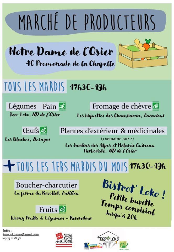 Présence de producteurs locaux tous les mardis et, les premiers mardis du mois, présence de deux producteurs supplémentaires ainsi que le Bistrot'Loko qui allie produit de qualité et convivialité.